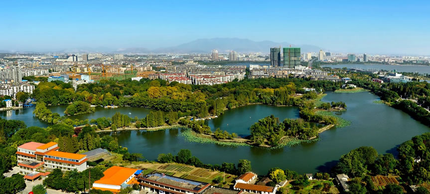 湖泊主要分布在沿江宿松、望江和安慶市區(qū),總面積在1147平方千米左右。面積超過100平方千米的湖泊有6個。其中宿松縣與湖北省黃梅縣交界處的龍感湖東西長28千米,南北最寬處20千米,平均水深3.7米,常年水面在350平方千米以上,且與大官湖(湖面積156平方千米)、黃湖(湖面積133平方千米)、泊湖(湖面積180平方千米)連成一片,岸線曲折,湖汊眾多,湖水位穩(wěn)定,水產(chǎn)資源豐富。其它主要湖泊還有望江縣的武昌湖(湖面積122平方千米),跨桐城和宜秀區(qū)的菜子湖(湖面積200平方千米),跨宜秀、大觀區(qū)和懷寧縣的石門湖(湖水面隨長江水位的變化而變化較大),市郊的破罡湖(湖面積34平方千米)、石塘湖(湖面積20平方千米)等。