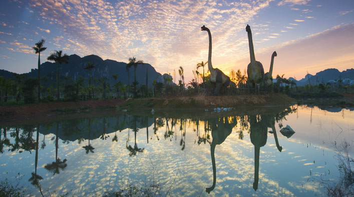 龍谷灣恐龍主題公園是國家AAAA級旅游景區(qū),位于扶綏縣上龍大道999號,距南友高速公路扶綏出口3公里。占地面積3000畝,是龍谷灣旅游休閑度假區(qū)的一期工程,于2017年元旦建成開業(yè)。公園由遠古呼喚、多媒體體驗中心、動感地帶、兒童王國、恐龍谷等板塊組成,是集科普研學(xué)、旅游觀光、游樂體驗為一體的亞洲最大的恐龍主題公園。龍谷灣旅游休閑度假區(qū)瞄準(zhǔn)“3.5小時經(jīng)濟圈”休閑度假市場,突出恐龍文化和壯族民俗文化,規(guī)劃建設(shè)主題公園、特色小鎮(zhèn)、商業(yè)綜合體、田園綜合體、康養(yǎng)旅居城、體育旅游、智慧旅游、國際教育、民宿、汽車旅游營地等,形成龍谷灣恐龍公園、國際慢生活商業(yè)中心、錦繡八桂田園綜合體、國際酷玩休閑世界、國際共享康養(yǎng)旅居城五大區(qū)域。