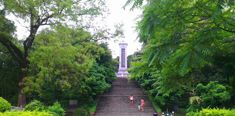 中越人民革命烈士紀念碑位于東興市東興鎮(zhèn)西南側的中越人民友誼公園內(nèi),是為紀念抗法援越戰(zhàn)爭中犧牲的中國英烈而修建的。紀念碑高13米,碑頂上綴有一顆紅五星,碑座下由66級石階拾級而上,臺階兩旁翠柏長青,象征著烈士的英靈與世長存。碑身的正、背面分別用中越文題寫“中越人民革命烈士紀念碑”和“光榮的人民英雄永垂不朽”碑文,現(xiàn)今是防城港市開展紅色教育活動的主要陣地。2022年入選第八批廣西壯族自治區(qū)文物保護單位推薦名單。