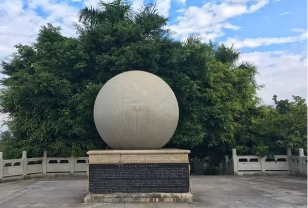 廣西沿邊公路零起點標志—零點紀念壇,位于北侖河入?诘拇蟮號|端,占地面積550平方米,包括平臺、欄桿、球雕塑標志和基座部分。整個設計新穎、造型美觀,均用花崗巖石材料精雕細刻而成。