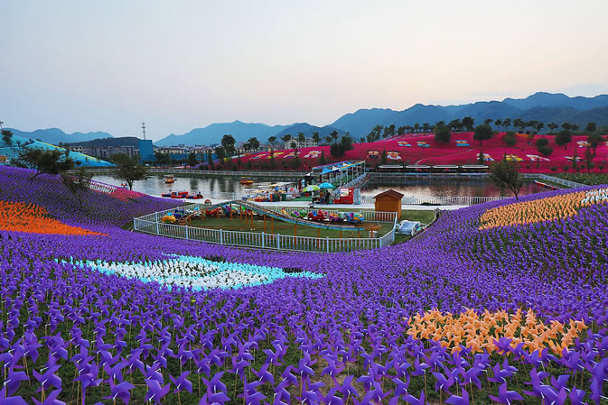 - 薰衣草花海:400畝梯田式種植,5-6月、9-10月為盛花期,紫色花海與格;、粉黛草交織,形成“紫色地毯”景觀,適合航拍及婚紗攝影。