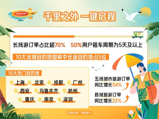 從預(yù)訂數(shù)據(jù)看,上海、北京、成都、廣州、西安、烏魯木齊、杭州、重慶、南京、深圳是暑期國內(nèi)十大熱門旅游城市。同時(shí),五線城市及縣域等下沉市場依然表現(xiàn)活躍。暑假期間,五線城市旅游訂單同比增長34%,縣域旅游訂單同比增長22%,均高于一線及新一線城市增速。前十大熱門縣域旅游目的地中,伊犁州成為大贏家,有伊寧市、新源縣、布爾津、特克斯等四地入選。