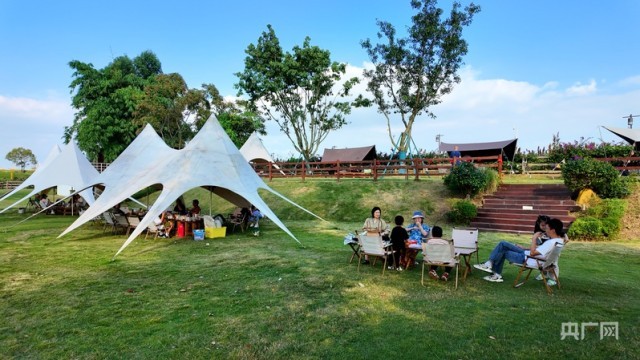 多元體驗(yàn)讓假日消費(fèi)延伸出更多維度。秋日艷陽下,孩子們在紅高粱地中盡情高歌;滿天星斗下,非遺傳承人揮舞的鐵花點(diǎn)亮夜空;星空影院前,游人圍坐煮茶觀影;露營基地內(nèi),燒烤的香氣飄滿整個田野……這座融合文化體驗(yàn)與田園休閑的園區(qū),正成為人們的假日消費(fèi)的新選擇。園區(qū)負(fù)責(zé)人陳霞介紹,園區(qū)內(nèi)專門設(shè)計(jì)了甲骨文識字、傳統(tǒng)文化研學(xué)、高粱采收等親子項(xiàng)目,讓游客在體驗(yàn)中消費(fèi),在消費(fèi)中感受文化。