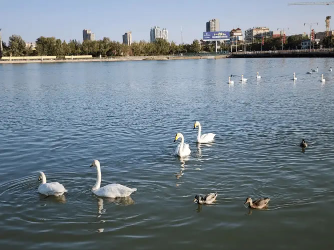 每年國慶節(jié)前后,天鵝會陸續(xù)飛抵梨城,開啟越冬模式,今年是野生天鵝第20年來到庫爾勒越冬。近年來,隨著庫爾勒生態(tài)環(huán)境不斷改善和保護(hù)力度不斷加強,適宜的氣候、健康的水源為這些“水中精靈”營造了安全舒適的生存環(huán)境。(馬麗娟)