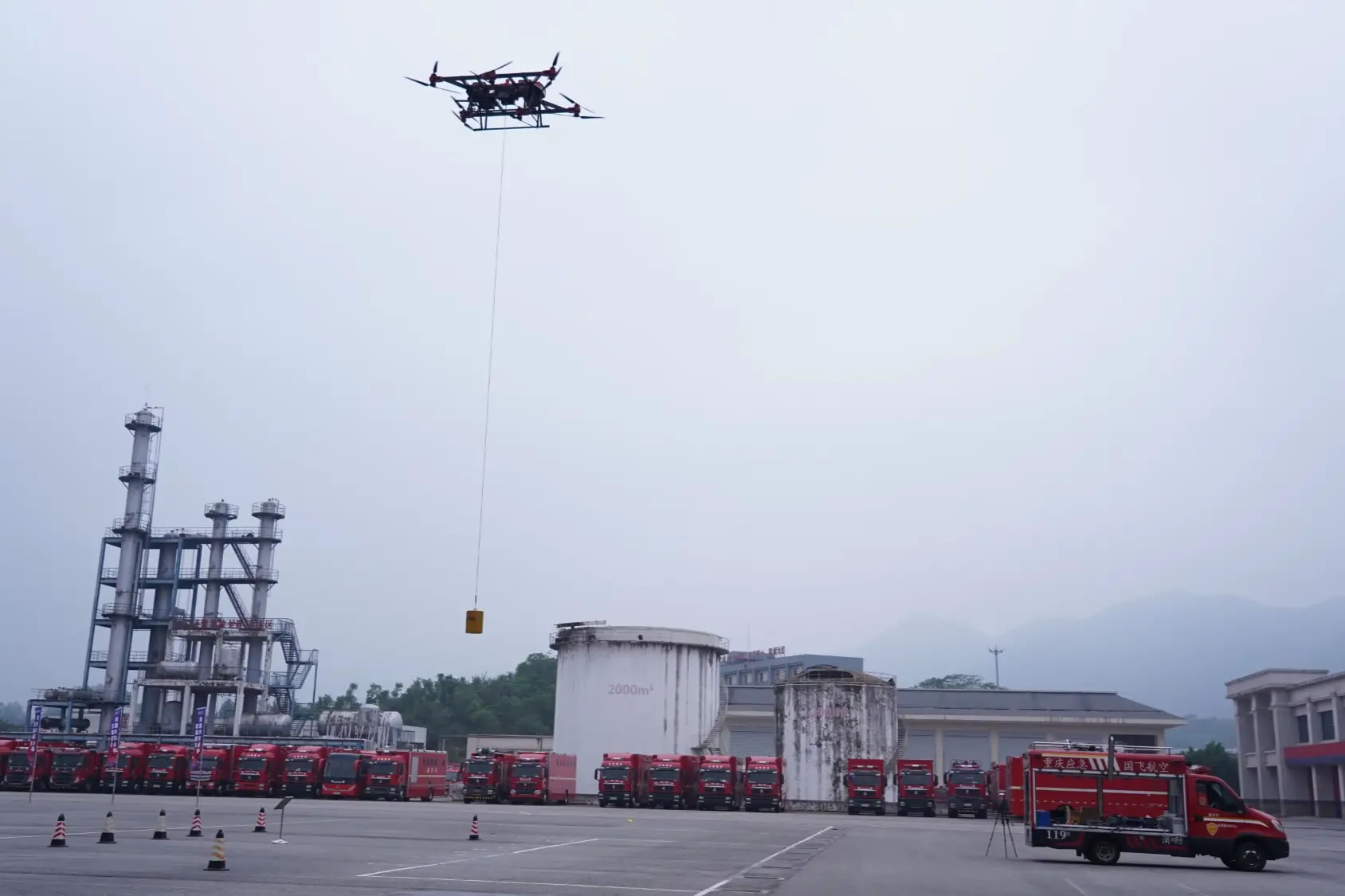 針對(duì)高層建筑火災(zāi)、森林火災(zāi)、洪澇等復(fù)雜環(huán)境中物資運(yùn)輸難題,測(cè)試驗(yàn)證了無(wú)人機(jī)載荷和精準(zhǔn)投送的能力。測(cè)試中,多款具備大負(fù)載、精準(zhǔn)拋投、紅外熱成像等功能的無(wú)人機(jī)表現(xiàn)亮眼。部分無(wú)人機(jī)能夠在掛載140公斤的載荷下,測(cè)算作業(yè)工況下飛行時(shí)間達(dá)到15分鐘以上,且具備復(fù)雜環(huán)境中物資運(yùn)輸、被困人員搜救等能力。