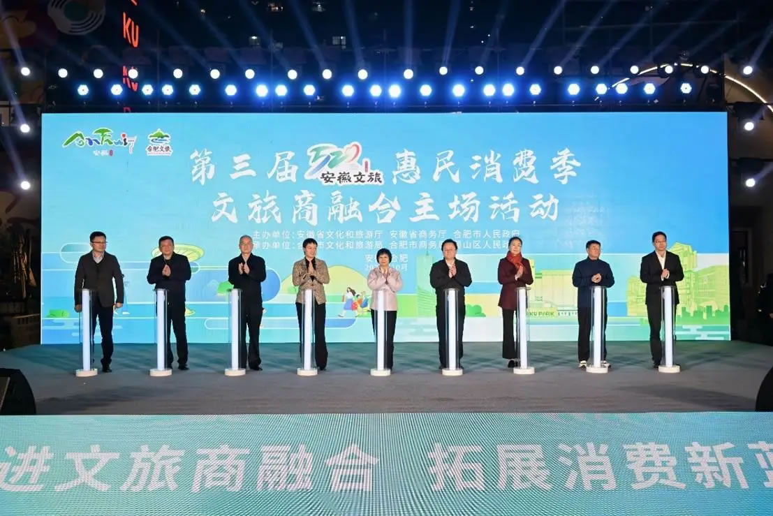 省商務(wù)廳、省文化和旅游廳聯(lián)合宣介首批“安徽省商文旅融合發(fā)展集聚區(qū)”;顒右砸曨l形式回顧第三屆“520”安徽文旅惠民消費季精彩時刻。最后,與會領(lǐng)導(dǎo)與嘉賓共同為本次主場活動啟幕。