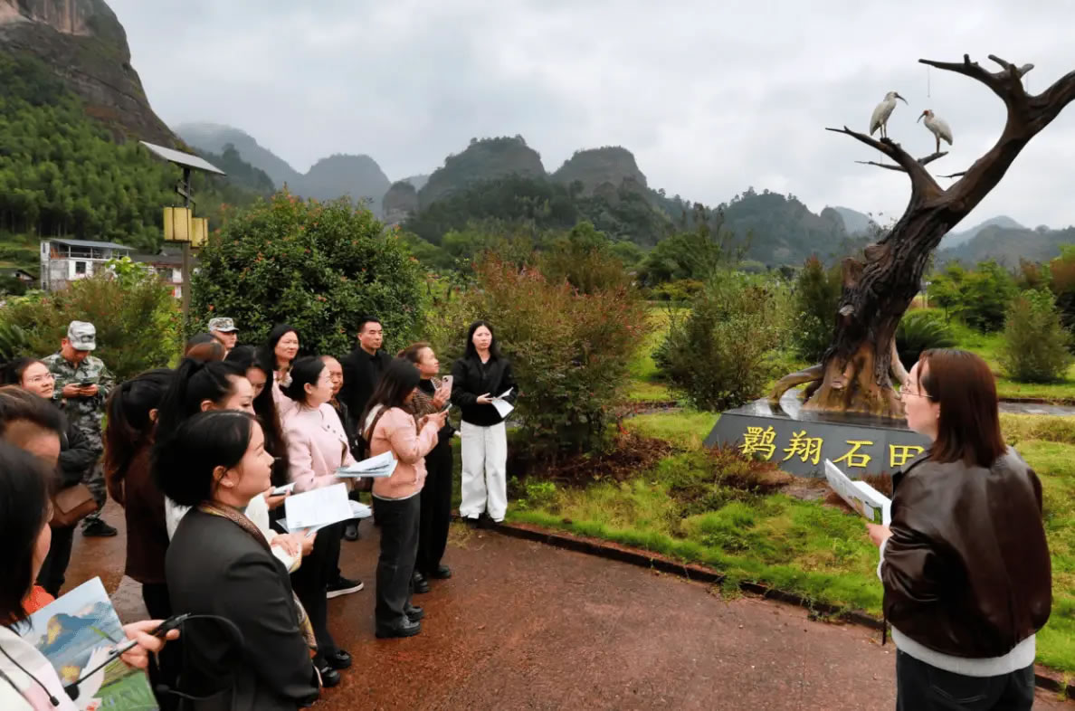 在崀山石田村朱鹮科普園聆聽朱鹮故事(顏克明 攝)
