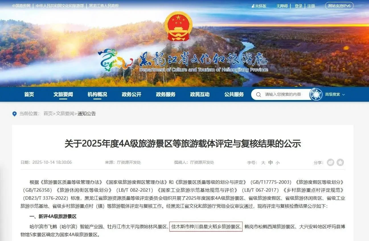 近日,黑龍江省文化和旅游廳發(fā)布2025年度AAAA級(jí)旅游景區(qū)評(píng)定與復(fù)核結(jié)果公示,樺川縣星火稻鄉(xiāng)旅游景區(qū)成功躋身國(guó)家AAAA級(jí)旅游景區(qū)行列。