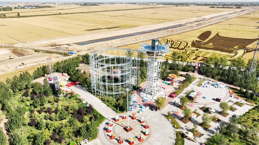 這是農(nóng)文旅深度融合發(fā)展的創(chuàng)新實(shí)踐。作為新中國(guó)第一個(gè)集體農(nóng)莊的誕生地,星火村曾創(chuàng)下多個(gè)“第一”,第一個(gè)拖拉機(jī)站、第一個(gè)農(nóng)民水稻科研小組、第一個(gè)寫入小學(xué)課本的新中國(guó)集體農(nóng)莊.....如今,這份紅色基因與5000平方米生態(tài)稻田、朝鮮族民俗風(fēng)情深度交融,催生出獨(dú)特的文旅IP。登上40余米高的星火塔,可俯瞰稻海翻波;體驗(yàn)430米玻璃水滑梯,能感受速度與清涼的碰撞;在星火時(shí)光供銷社追憶往昔,于星火工坊體驗(yàn)打糕制作,讓游客在一靜一動(dòng)間觸摸歷史溫度與民俗魅力。自景區(qū)開(kāi)園開(kāi)始,首屆非遺美食文化節(jié)、寒地小龍蝦節(jié)、稻種嘉年華等特色創(chuàng)意活動(dòng)相繼舉辦,共計(jì)吸引客流108萬(wàn)余人,帶動(dòng)收入8600萬(wàn)元,印證了“以文塑旅、以旅興農(nóng)”的鮮活成效。