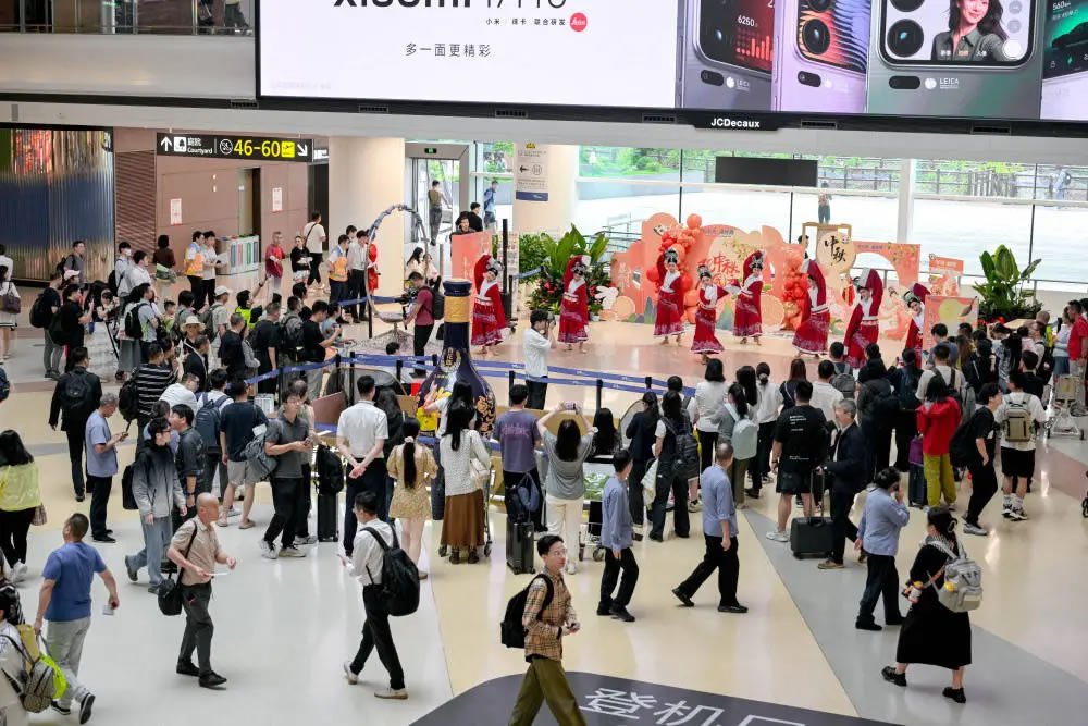 據(jù)介紹,圍繞營造濃厚節(jié)日氛圍,成都雙流、成都天府兩場組織了“國慶76周年”童聲合唱快閃、“高效赴商途慢品小城韻”聯(lián)合營銷、“山河錦繡·筆賦同欣”“禮樂賀國慶漢服迎中秋”等一系列主題文化活動。通過節(jié)目展演、互動游戲等形式增強旅客參與感與節(jié)日儀式感,并結(jié)合國慶元素與成都地標、機場吉祥物進行氛圍布置,充分展現(xiàn)了機場的服務(wù)溫度與文化內(nèi)涵。(成都日報錦觀新聞記者 楊富 供圖 四川機場集團)