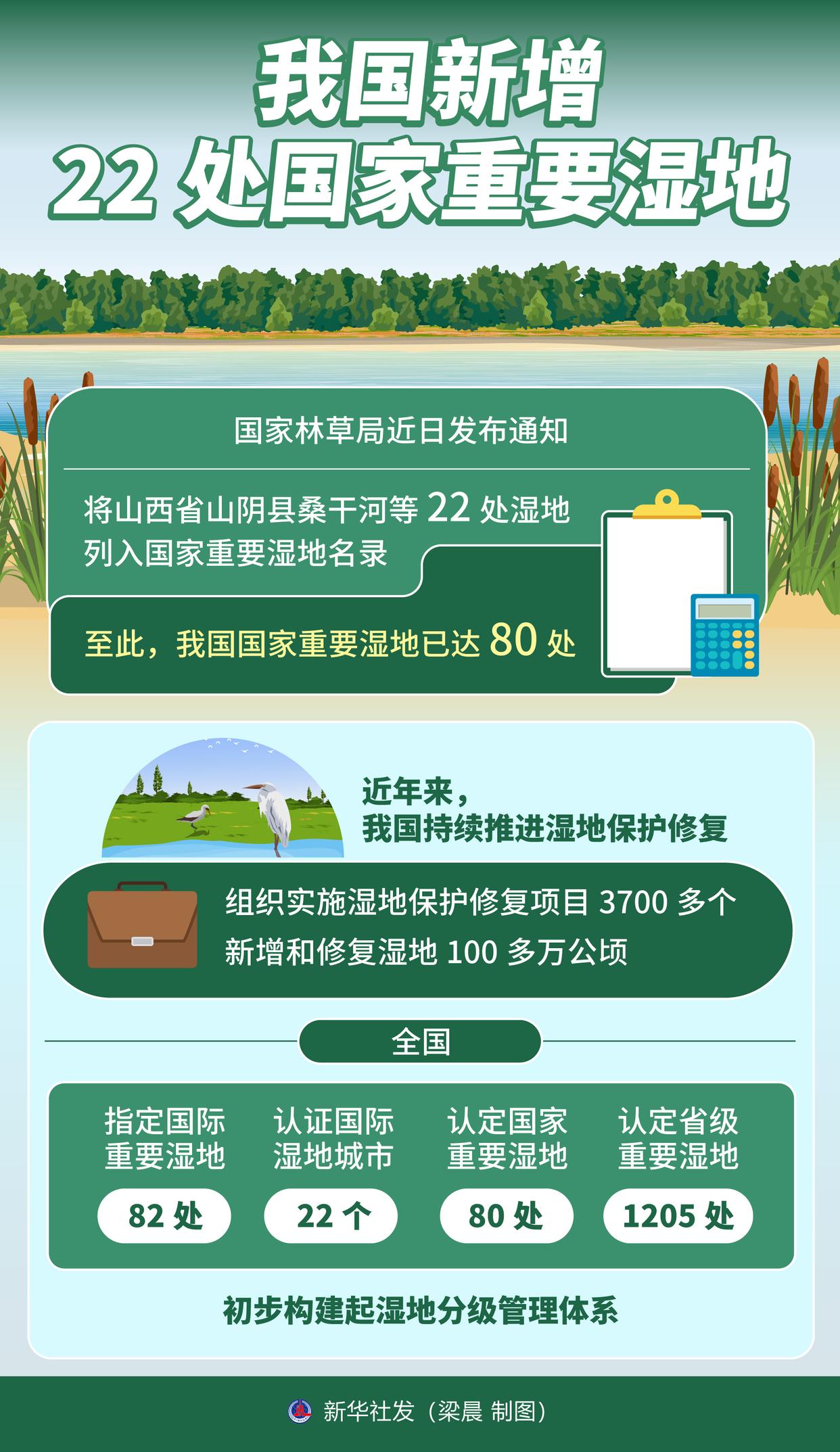 國(guó)家林草局近日發(fā)布通知,將山西省山陰縣桑干河等22處濕地列入國(guó)家重要濕地名錄。至此,我國(guó)國(guó)家重要濕地已達(dá)80處。