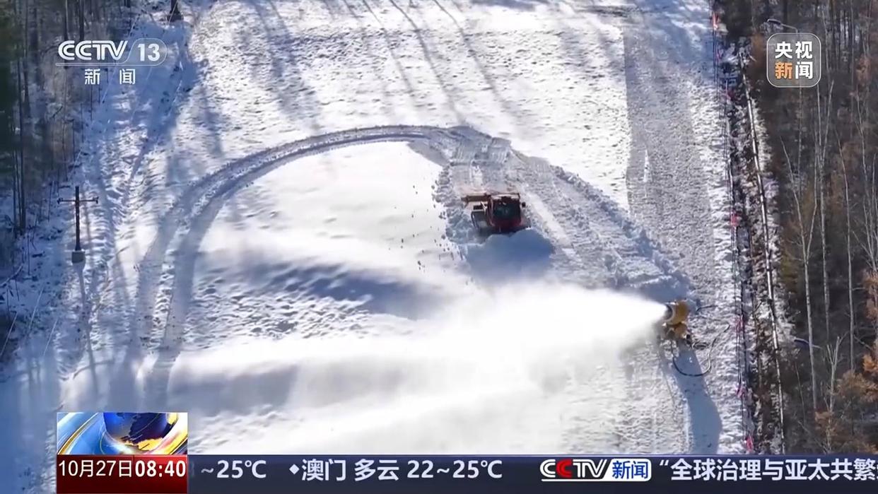在漠河市北極村,滑雪場也已進入開滑前的沖刺階段,造雪機、壓雪車24小時不間斷作業(yè),預計下周就能開板。